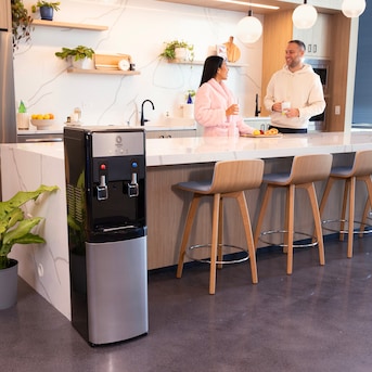 Dispenses 2 temperatures: cold and hot water