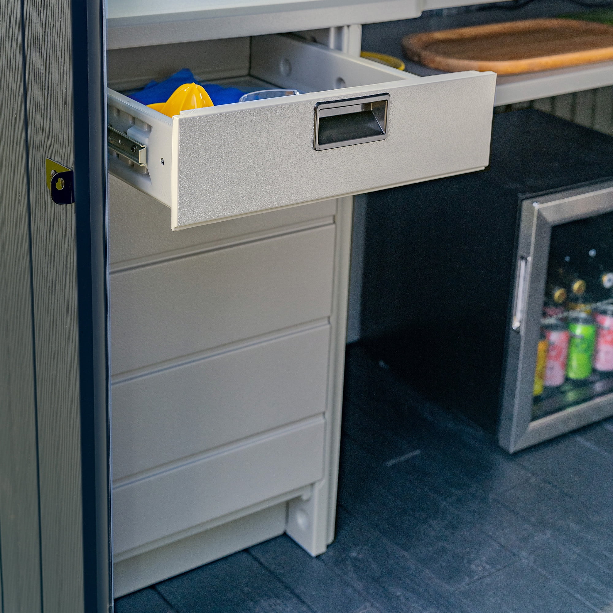 Secure Access: Pad-lockable slide door access keeps contents safe and secure (padlock not included).