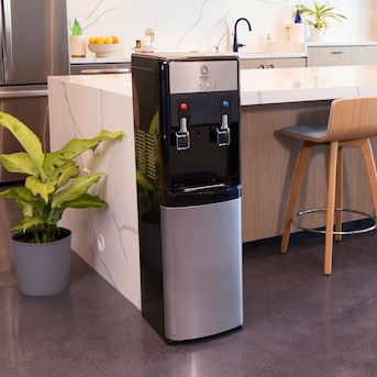 Dispenses 2 temperatures: cold and hot water