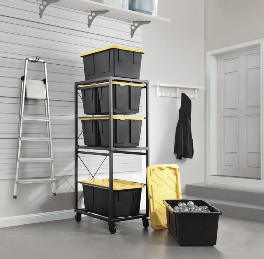 Each Shelf Accommodates One 27-gallon Bin or Two 12-gallon Bins